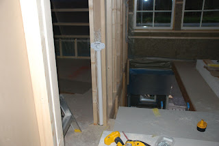 Denna onsdag har snickarna ägnat sig åt ovanvåningen. De har plastat och glesat taket samt påbörjat regling av innerväggarna, det tar sig.